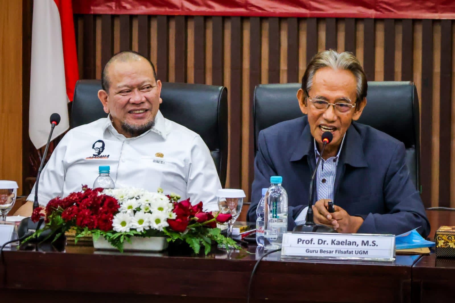 Hadir sebagai narasumber dalam FGD, Prof. Dr. Siti Chamamah Soeratno (Guru Besar Ilmu Budaya UGM), Prof. Sofian Effendi, M.A., M.P.I.A., Ph.D. (Guru Besar Ilmu Administrasi Negara UGM), Prof. Dr. Kaelan, M.S. (Guru Besar Filsafat UGM) dan Dr. Zainal Arifin Mochtar (Lektor Kepala Hukum Tata Negara Universitas Gadjah Mada).(MA)