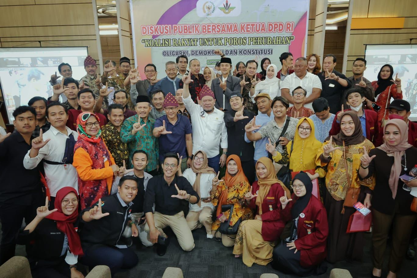 Pada kesempatan itu, Ketua DPD RI didampingi Staf Khusus Ketua DPD RI, Sefdin Syaifuddin. Hadir pula Ketua Simpul Jaringan Umat Institute (Sijarum Institute), Khalifah Alam dan sejumlah akademisi, tokoh dan aktivis lintas elemen dan mahasiswa dari beberapa perguruan tinggi di Palembang.