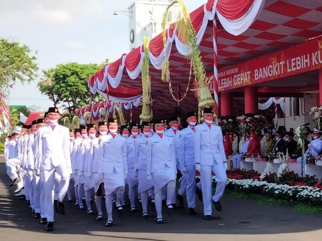 SURABAYA, IPers - Di hari Kemerdekaan Yang istimewa yang ke 77 Walikota Surabaya serta jajaran Pemkot Kota surabaya menggelar Upacara HUT ke 77 RI yang berlangsung di Halaman balai kota surabaya ( 17-08-2022) Rabu.