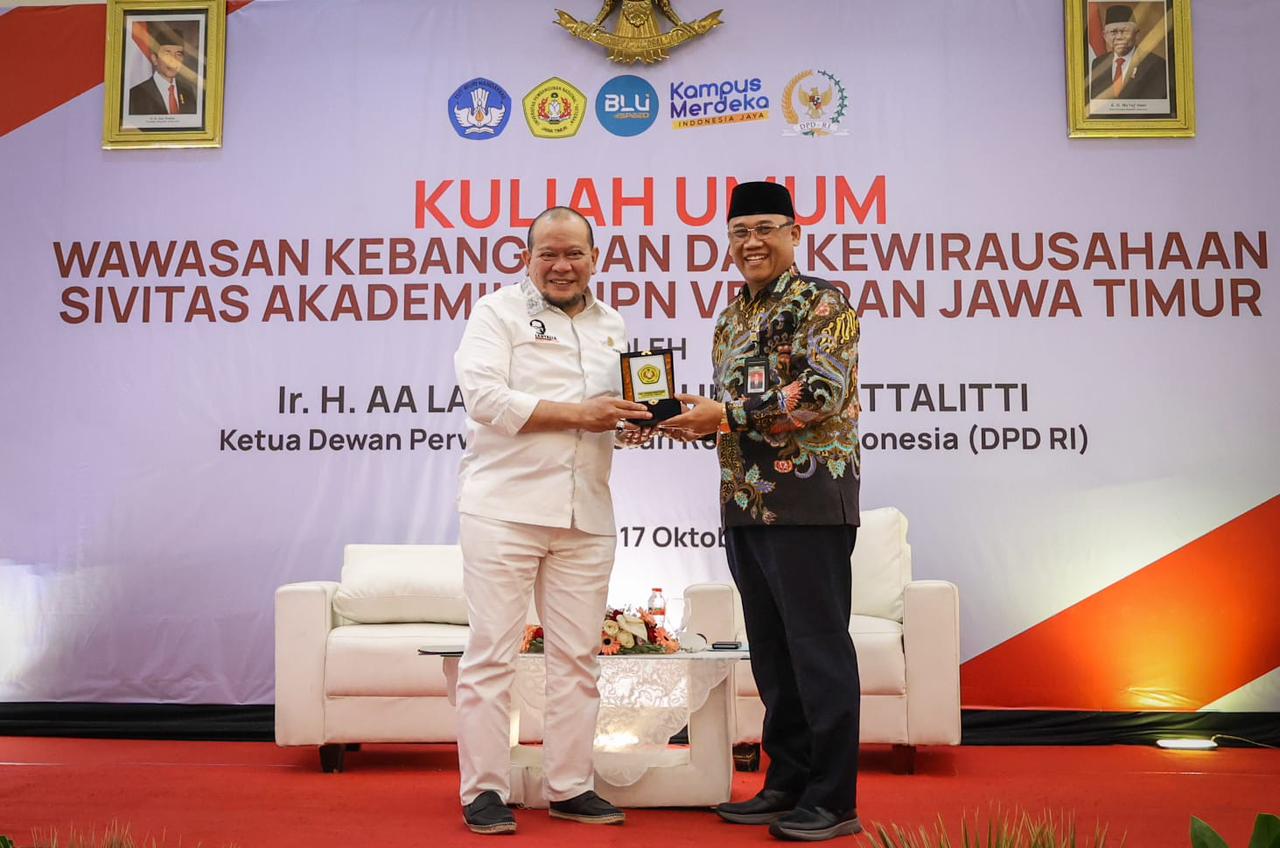 SURABAYA, IPers - Kedatangan Ketua DPD RI AA LaNyalla Mahmud Mattalitti ke Universitas Pembangunan Nasional (UPN) Veteran Jawa Timur dimanfaatkan oleh Rektor UPN untuk meminta dukungan dalam pembukaan fakultas kedokteran dan usulan beasiswa bagi mahasiswa.