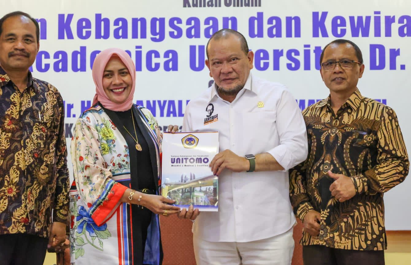 Selanjutnya ditambahkan Rektor, seluruh sivitas akademika Unitomo juga menyatakan support kepada Ketua DPD RI, semoga bergeser menjadi Ketua atau pemimpin lembaga tinggi lainnya.