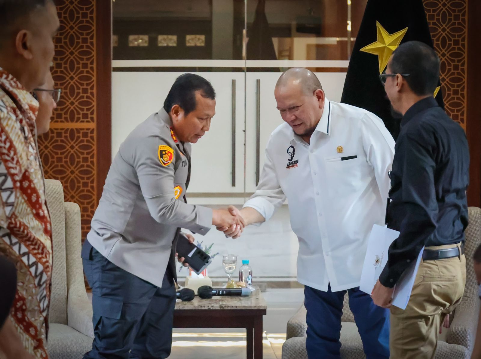 SURABAYA, IPers - Ketua DPD RI, AA LaNyalla Mahmud Mattalitti menemui Kapolda Jawa Timur, Irjen Pol Toni Harmanto. Dalam pertemuan yang digelar di Mapolda Jatim, Ketua DPD RI menyampaikan aspirasi para pesilat di Jatim terkait himbauan Polda Jatim untuk membongkar tugu-tugu perguruan silat di sejumlah kota dan kabupaten di Jatim.