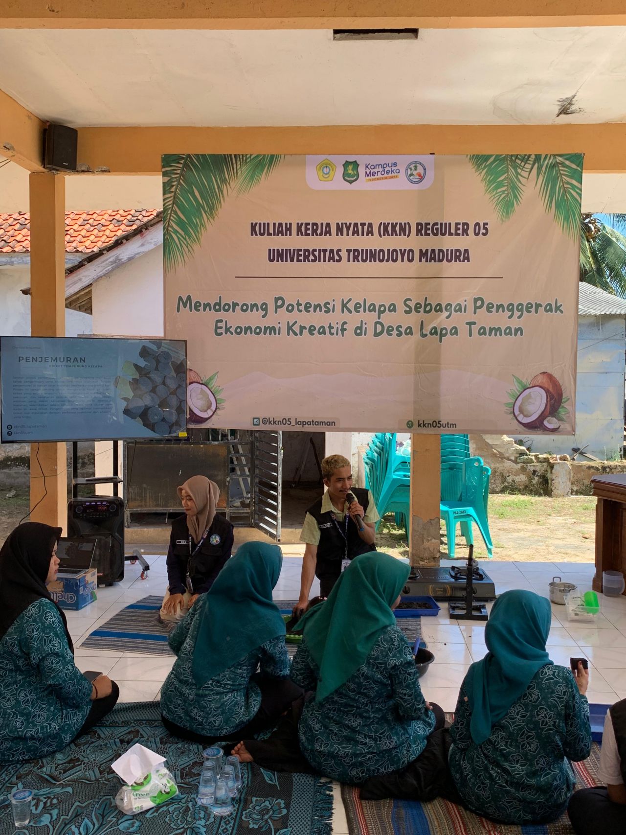 Sumenep, IPers - 11 Juli 2025 - Sebagai bagian dari bentuk pengabdian kepada masyarakat, Mahasiswa KKN 05 UTM menggelar kegiatan sosialisasi dan edukasi pembuatan briket dari tempurung kelapa di Desa Lapa Taman, Kecamatan Dungkek, Kabupaten Sumenep. Kegiatan ini berlangsung pada Senin, 8 Juli 2025 dan melibatkan sejumlah warga dari berbagai dusun yang ada di desa tersebut.