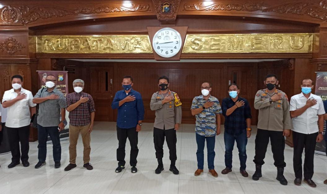 SURABAYA, IPers.com - Kapolda Jatim Irjen Pol Dr. Nico Afinta didampingi Pejabat Utama (PJU) Polda Jatim, dan Kabid Humas Polda Jatim Kombes Pol Gatot Repli Handoko menerima audiensi dari Persatuan Wartawan Indonesia (PWI) Jawa Timur di Gedung Lobby Tribrata, lantai 2 Mapolda Jatim, pada hari Selasa (23/02/2021) siang.