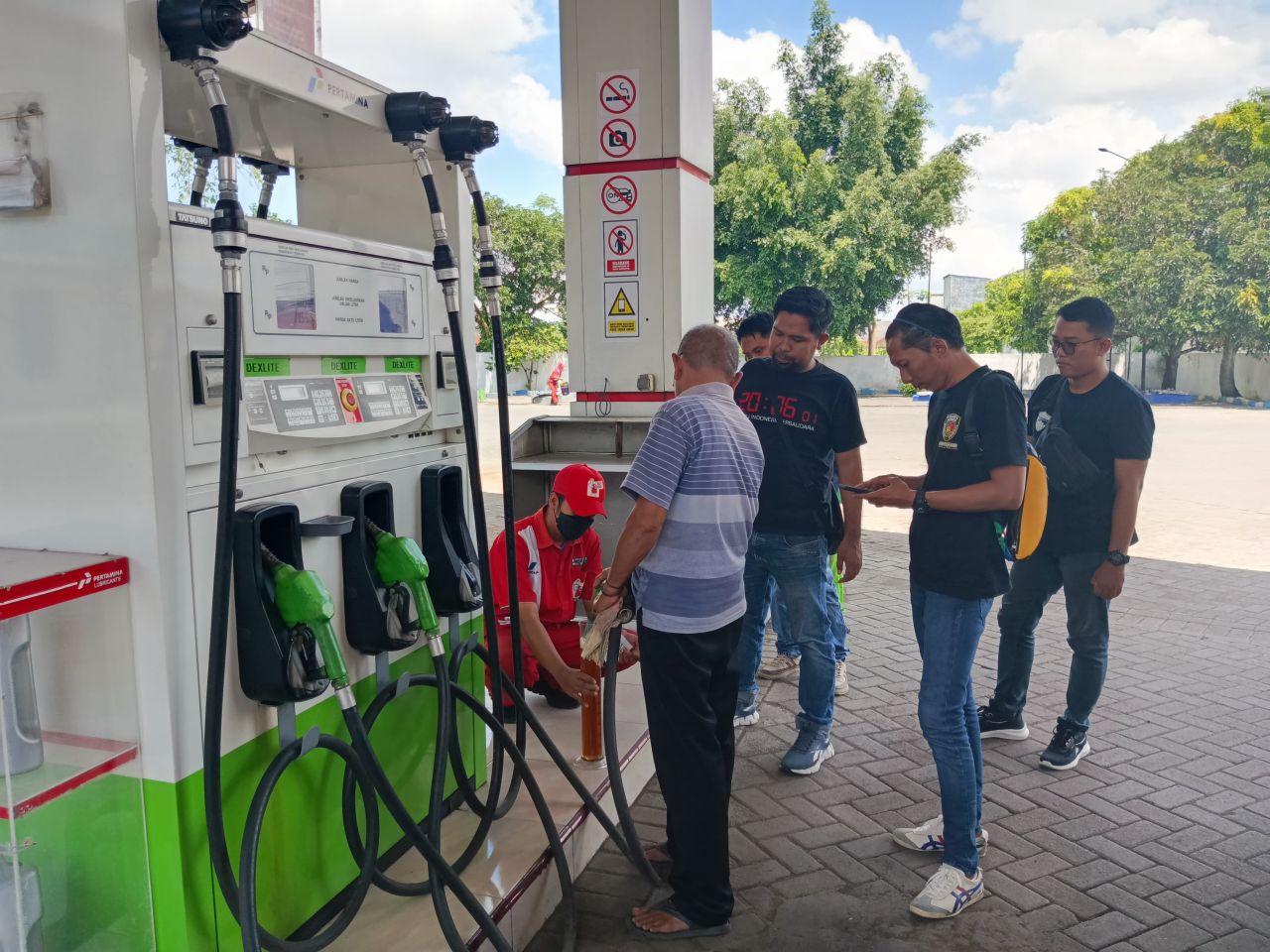 "Juga pengecekan dari alat dispenser yang ada di SPBU. Untuk takarannya menggunakan gelas ukur, kami pastikan ukurannya pas dengan standar pengecekan ini, harus pas per liternya," imbuhnya.